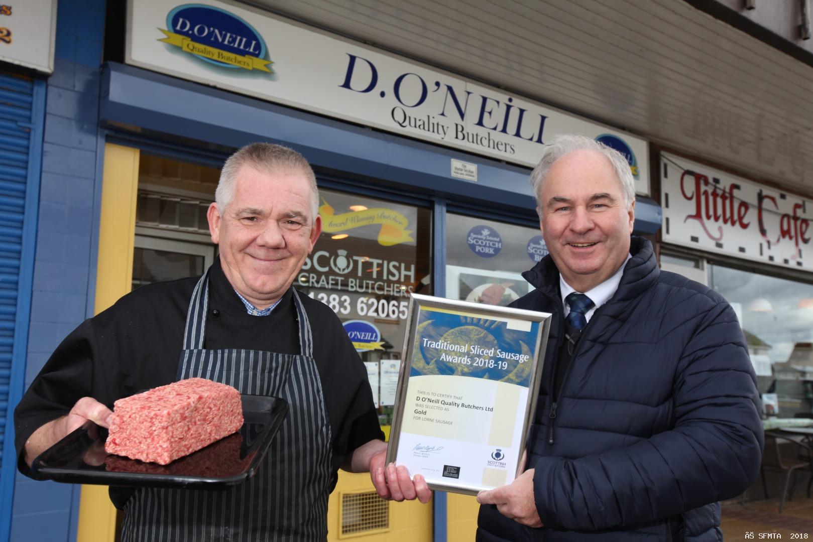Scott Paton and Gerry McArthur from AD Paton Butchers pictured with their Gold Award
